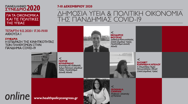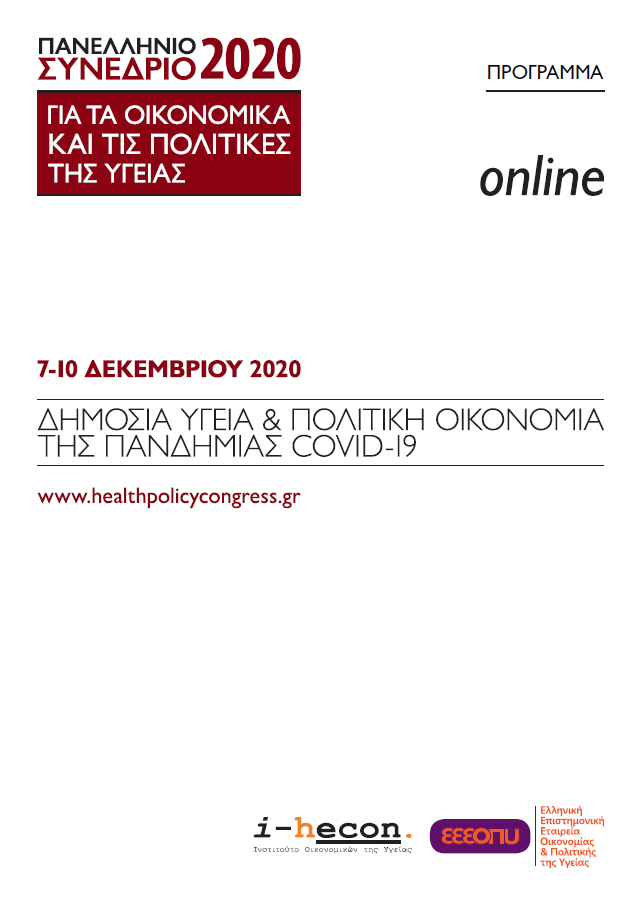 Πανελλήνιο Συνέδριο 2020 για τα Οικονομικά και τις Πολιτικές της Υγείας: «Δημόσια Υγεία & Πολιτική Οικονομία της πανδημίας COVID-19» 7-10 Δεκεμβρίου 2020 – Οnline Conference: Live Streaming https://www.healthpolicycongress.gr/livestreaming/